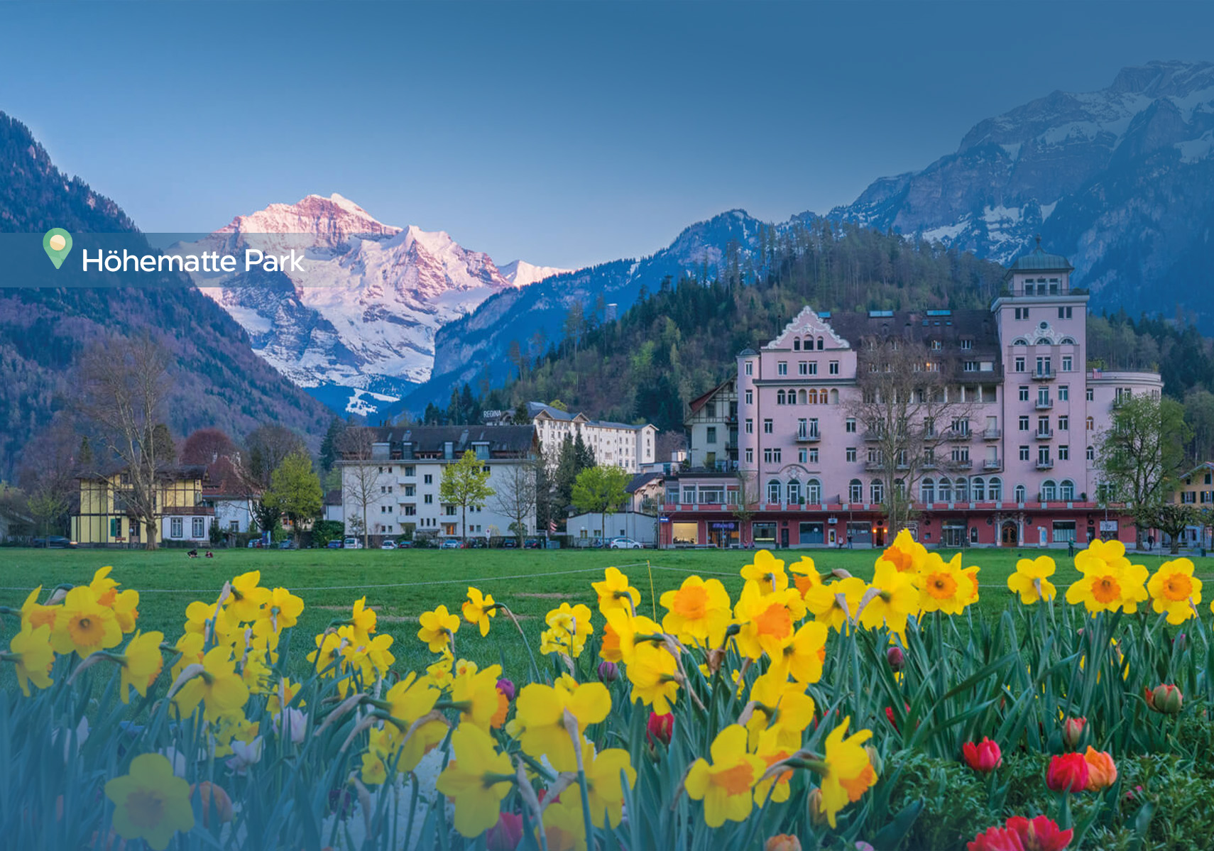 Continue the day with an Orientation City Tour of Interlaken before free and easy at the traditional resort town on a narrow stretch of valley in between the emerald-colored waters of Lake Thun and Lake Brienz in the mountainous Bernese Oberland region of central Switzerland.
